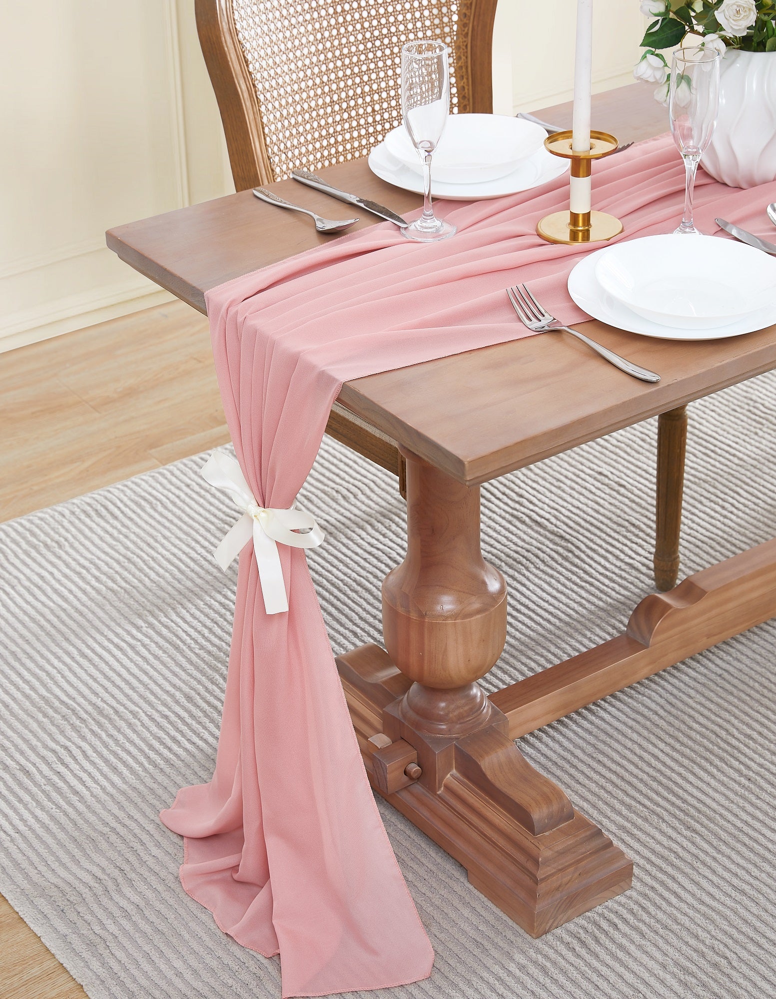 - VARIETY OF SIZES AND COLORS TO MATCH ANY PARTY THEME- Our Dining Table Runners Come in Multitude of Colors and Sizes. We Offer our Centerpiece Table Decorations in 120, 156 and 192 Inch Length (10, 13 and 16 Feet, Respectively). Our Gauze Table Runner Come in Beige, Dusty Blue, Dusty Rose, Cream Ivory, Nude (Taupe) and Rose Pink Colors so You Can Match Them to Any Wedding Décor.