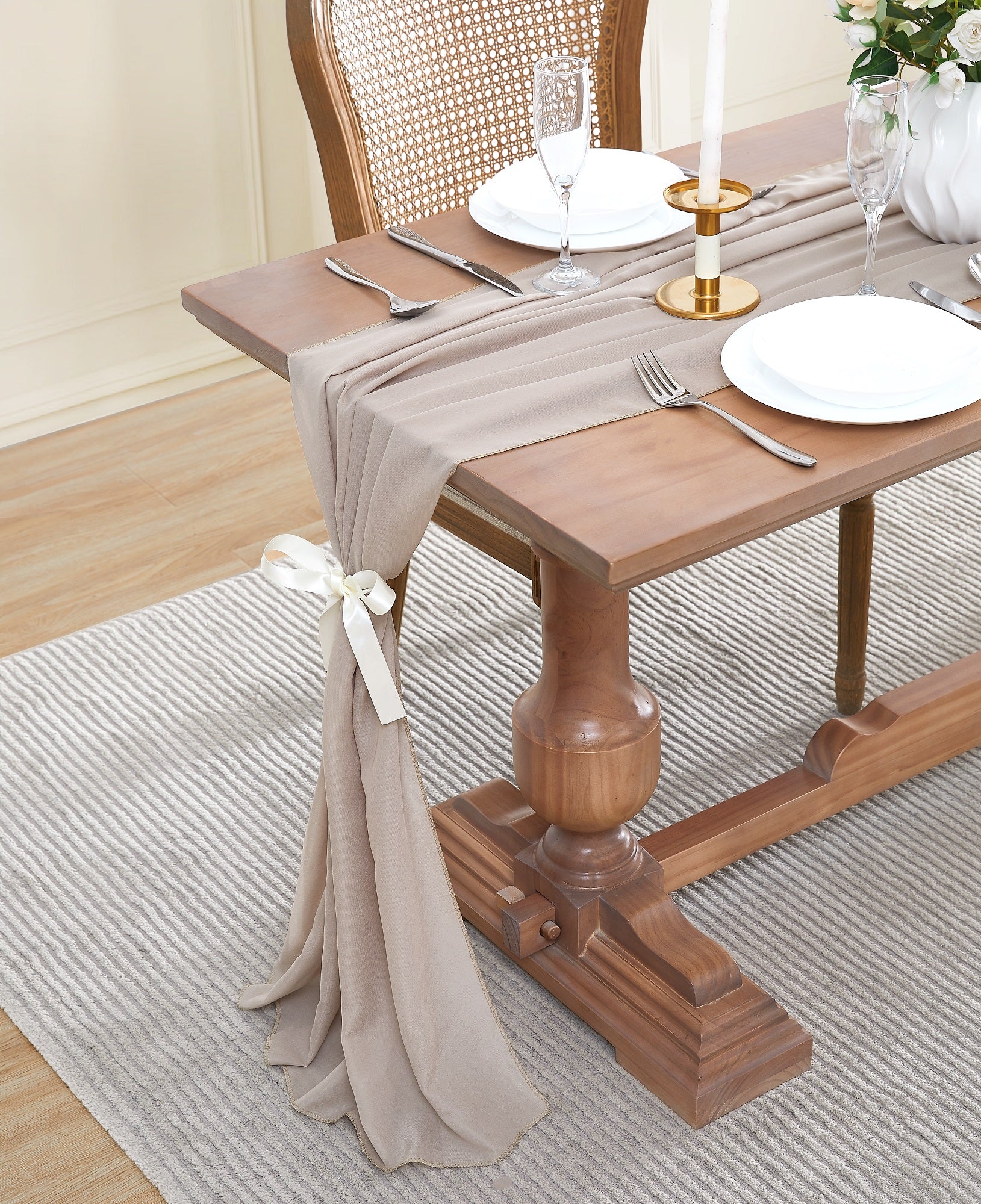 - PREMIUM CHIFFON TABLE RUNNER AT AFFORDABLE PRICE – Warm Home Designs 35 Inch Wide Beige Chiffon Wedding Runners are a Great Way to Add Classic Elegance to Any Wedding Ceremony. Our Cheesecloth Table Runner is Made from Premium Chiffon That's Soft to the Touch Yet Sturdy Enough to Be Used for Outdoor Wedding Decorations. All at a Price Anyone Can Afford. So Buy Our Table Decorations for Party and See the Difference for Yourself!